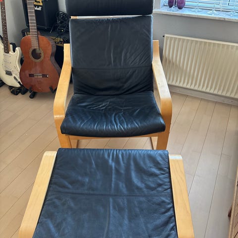 2 stk. lækre IKEA lænestole i sort læder, udgået model