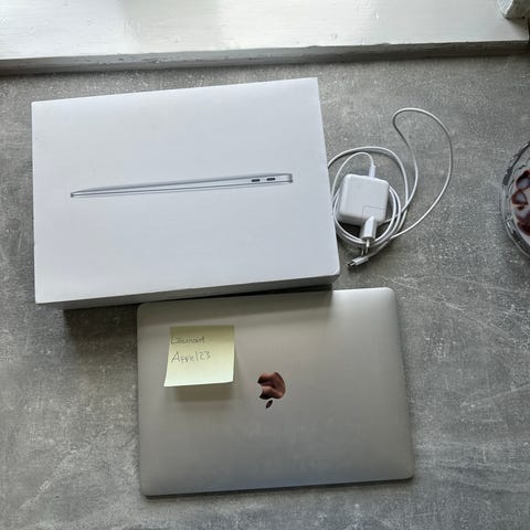 Apple MacBook Air 13,3" bærbar computer i sølv. Købte den tilbage i november 2021, og har hovedsageligt brugt den til skole. Oplader medfølger dsv ikke, eftersom den for længst er gået i stykker. Kvittering haves, og skriv gerne hvis du har nogle spørgsmål:)