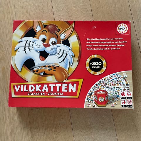 Educa Vildkatten børnespil med 36 billeder. Spillet er designet til børn fra 2 år og op, for 2-4 spillere, og har en spilletid på cirka 10 minutter.