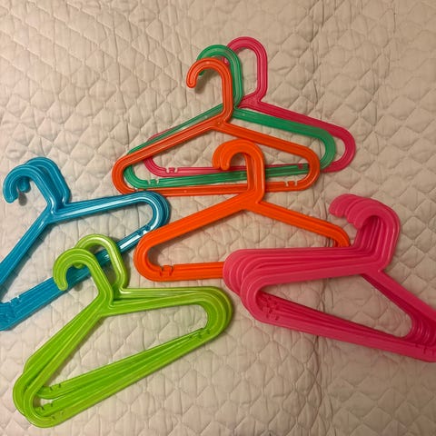 IKEA børnebøjler lavet af plastik i flere farver. Designet til børn og egnet til opbevaring af børnetøj.