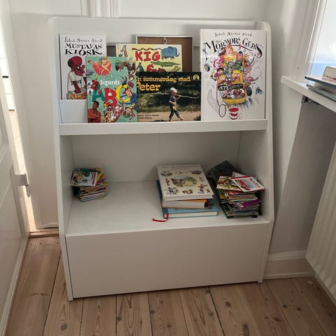 IKEA Bergig bogholder med opbevaring. hvid med hylder og skuffer. Designet til børneværelset. Rigtig fin stand, ingen synlige mærker eller brugsspor.