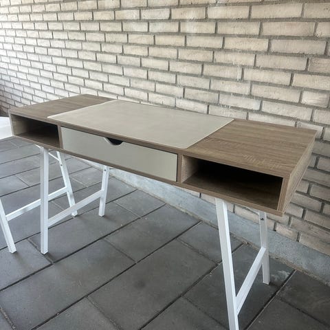 Flot og funktionelt skrivebord i modellen ABBETVED. Bordet er i lys egefarve med hvidt stel og fremstår i god stand. Perfekt til hjemmekontor, studie eller børneværelse. Klar til brug.