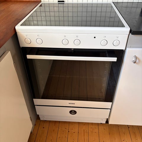 VOSS Induktion Komfur med induktionskogeplader og ovn i rustfrit stål samt med pyrolyse søger nyt hjem, da vi har bestilt nyt køkken med indbygningsovn. Kogepladen er udstyret med MaxiSense, så zonerne automatisk tilpasser sig gryde- og pandestørrelser, og ovnen har SteamBake funktion, hvor der tilføres fugtighed under bagning for at opnå sprød skorpe. Nypris ca. 11.000-12.000 kr.