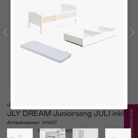 Junior seng fra jollyroom sælges. Brugt 1 års tid, har lidt brugsspor. Der medfølger 4 lagner og 2 våd ligger lagner.