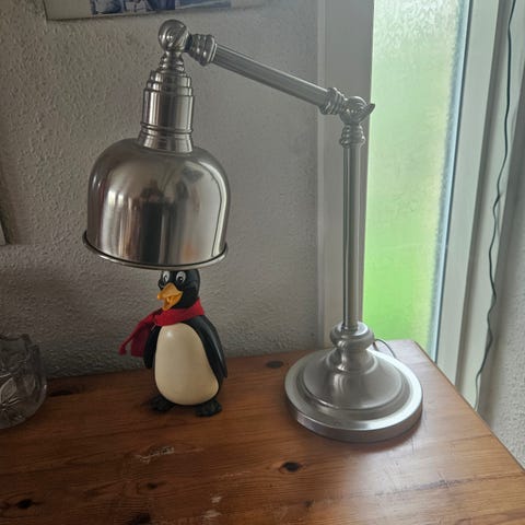 1 stk bordlampe med 2 styrker. Velegnet til skrivebord eller som læselampe. Kan justeres frem og tilbage. Ingen fejl