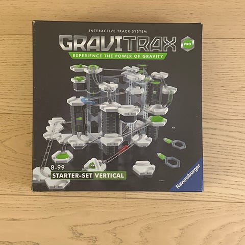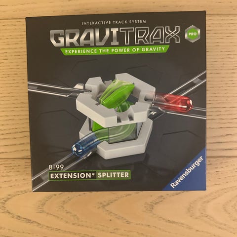 Gravitrax Expansion Tiptube legetøj med komponenter til udvidelse af Gravitrax kuglebane. Indeholder metalstykker og en grøn tiptube-enhed til at ændre kuglers bevægelse.