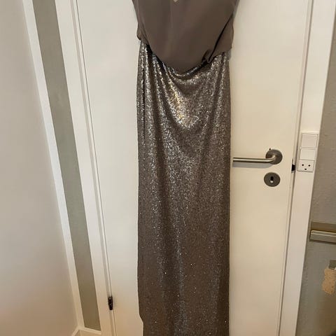 Lang festkjole med fine detaljer, med lidt bær hud samt lange slidser i siderne. Pretty Lavish design