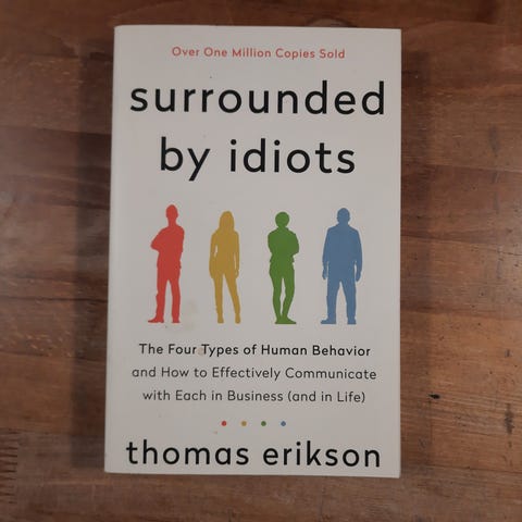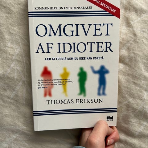 Thomas Erikson Omgivet Af Idioter bog. Kommunikations- og forståelsesbog med fokus på at forstå forskellige personlighedstyper. Udgivet på dansk. Sender ikke for køb under 200 kr.