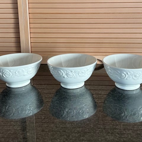 Skålene har været brugt, men fremstår i fin stand med lette brugsspor.