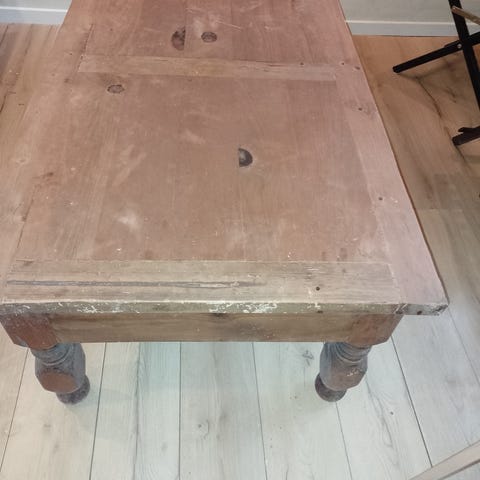 Flot massivt og rustikt mexicansk sofabord med skuffe. Bordet er stabilt og i pæn stand. Vi har vedligeholdt overfladen med bivoks for at fremhæve den pæne glød, samt gøre bordfladen vandafvisende.