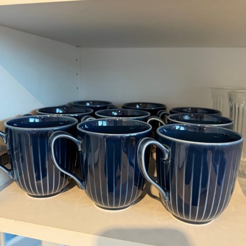 12 krus med hank, ser ud som nye, sælges samlet