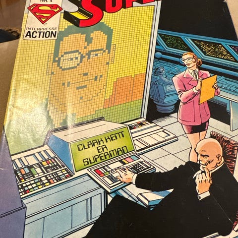 Superman Action tegneserie med klassisk superhelteillustrationer på forsiden. Indeholder historier med Superman og andre karakterer fra DC-universet.