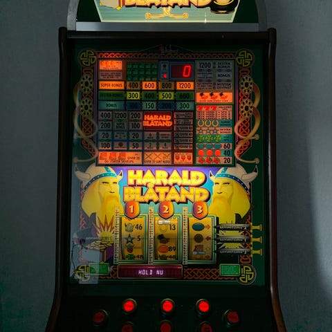 Automaten har et retro udseende med farverige detaljer og er velegnet til samlere eller som dekorativt element.