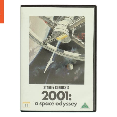 Stanley Kubrick 2001: A Space Odyssey DVD med digitalt restaureret og remastered indhold. Filmens cover viser rumstation og rumskib i rummet. Indeholder filmens originale version og ekstra materiale.