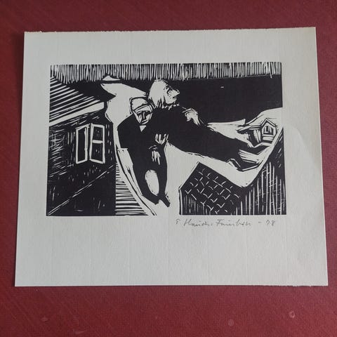 Originalt træsnit af kunstneren Poul Hauch-fausbøll.