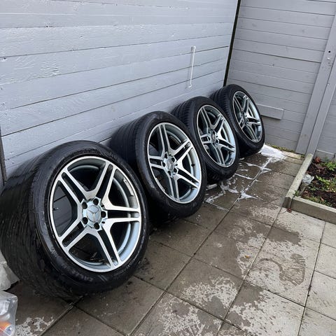 Originale Mercedes-Benz Fælge med dæk, 18 tommer, Har siddet på en R klasse. Dækkene er brugte og skal skiftes. Beskidte men ellers fin stand