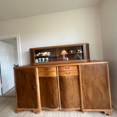 Fordi skænken er i solid træ, er den også godt tung. Kan løftes af to personer. 💪
