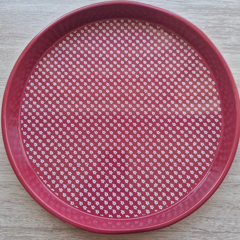 En super flot og stor forgyldt retro bakke/fad fra svenske Scandia Guld. Bakken er er belagt med 24 karat guld og har et smukt indridset blomstermønster i bakkefladen. Kanten på bakken er dekorativ med dens luftige hulle detalje. Den er i meget flot stand, har kun en anelse brugsslid nedenunder.