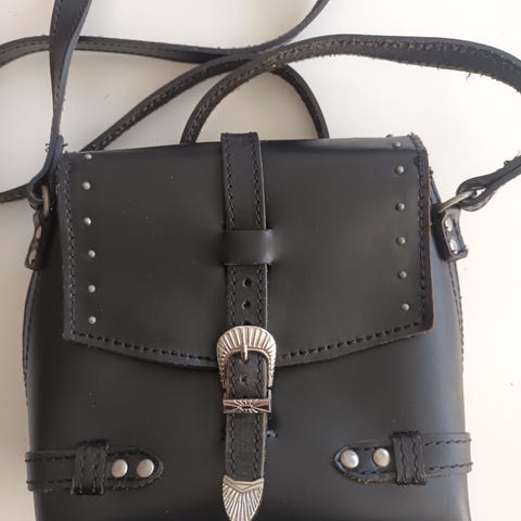 Sort læder taske med god lommer måler 35 x 20 cm,