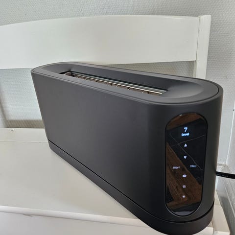 Georg Jensen Bernadotte brødrister i rustfrit stål. Designet til at riste brød jævnt med justerbare indstillinger. Passer til almindelige brødskiver og har et stilrent, moderne udseende.