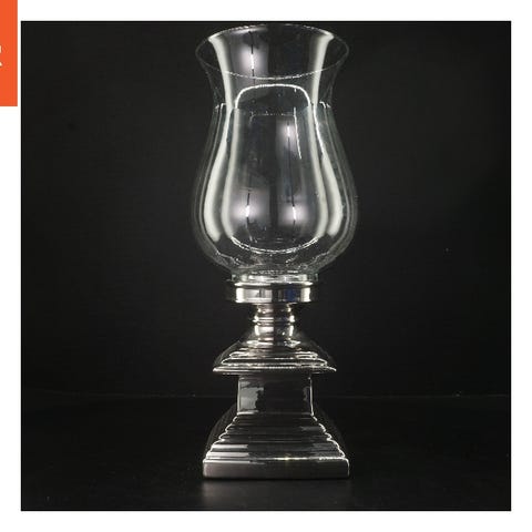 Lysestage, Margit Brandt, Ubrugt lysestage i glas og foden er i forsølvet aluminium og glasset kan tages af lysestagen. Led stearin lyset er i paraffin voks kører på batteri 2x AA ( Rød )