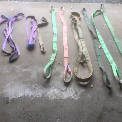 Skrællestrop, 4000-8000kg, 14 stk skræller til stropper og en Kasse med 10 defekte til reservedele sælges samlet