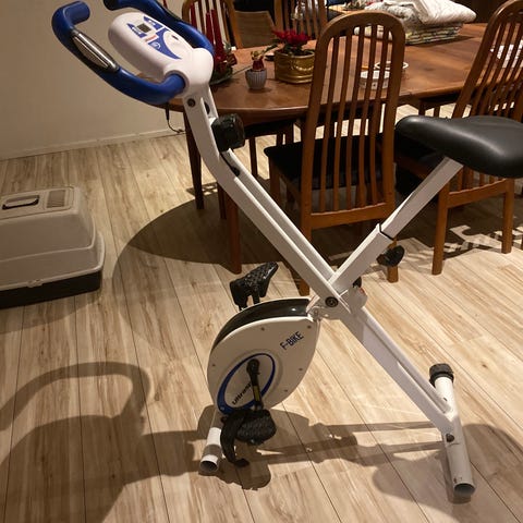 Ultrasport F-Bike motionscykel med foldbar ramme i sort og grøn. Udstyret med justerbart sæde og modstandsniveauer for tilpasset træning. Indeholder digital display til visning af træningsdata.