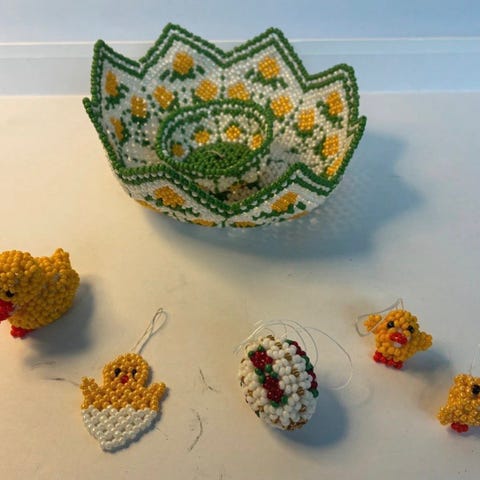 Super fint påske eller forårs perleophæng i blå nuancer. 3 smukke fugle.