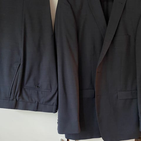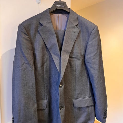 Købt i Allan Risumfeldt international mode i Odense C for 4200kr, Jakkesættet har været i brug 3 gange. Har været på renseri hvergang efterfølgende, og sælges sådan.
