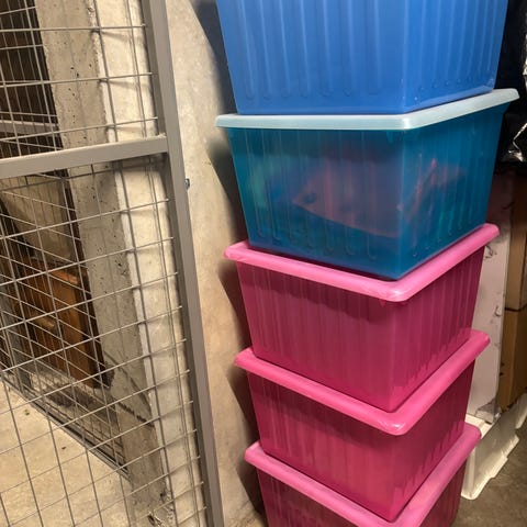 Brugt men fine, dog er begge låg gået i stykker i hjørne (nye kan købes i IKEA for 40,- pr. Stk) men kan sagtens bruges.