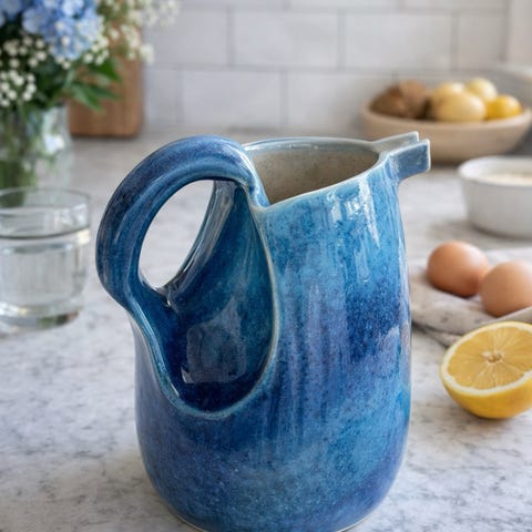 kande og mælkekande i grøn keramik. Sættet består af to dele: en større kande og en mindre mælkekande. Begge dele har en mat grøn overflade og er designet til servering af drikkevarer. Sæt