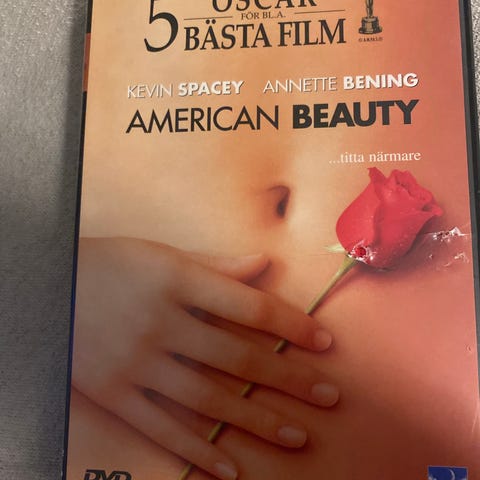 American Beauty DVD film med Kevin Spacey og Annette Bening. Filmen har modtaget 5 Oscars, inklusive Bedste Film. DVD'en indeholder bonusmateriale og er egnet til aldersgruppen 15+.
