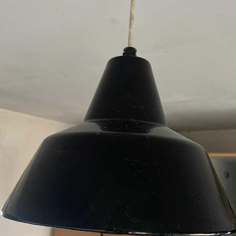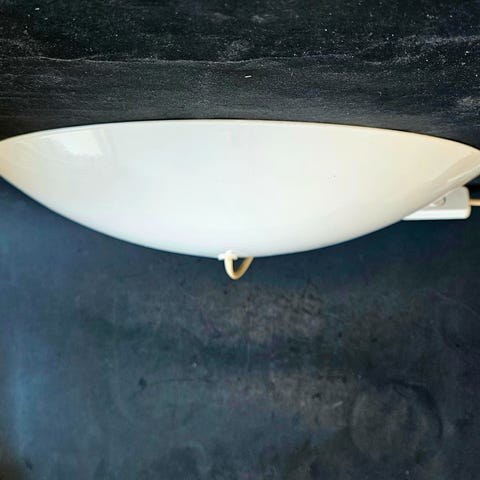 Bemærk: Små afskalninger og ridser (se fotos). Den ene lampe skal tilsluttes ny ledning, som vist på billedet. Pærer medfølger. Skruer/rawlplugs medfølger til den ene lampe