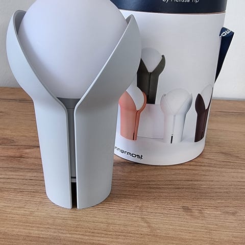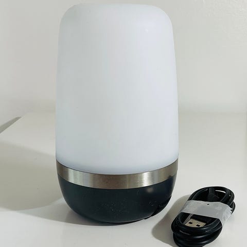 Blomus Spirit led outdoor lamp large. Trådløs. Lampen kan bruge både inde og ude. Kan stå i vådrum. Designet af Nina Thöming. Rustfri stål og plastik. En opladning holder 6-12 timer. 2 lysstyrker.