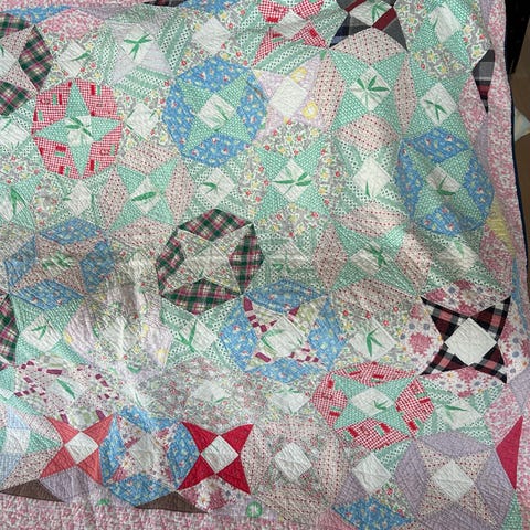 Rigtig fint vintage hånd syet quilt med bomulds fyld . Jeg vil tro det er fra 1950-60erne . Stoffet og bomulds fyldet .