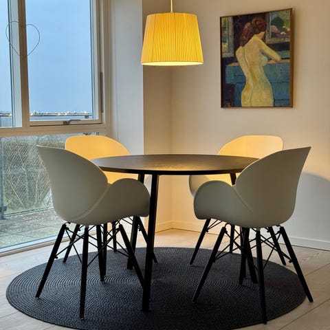 Fantastisk spisebord i linoleum som er et “levende” materiale, der har de fantastiske egenskaber, at det er antibakterielt og selvhelende, hvis der kommer små ridser i overfladen.