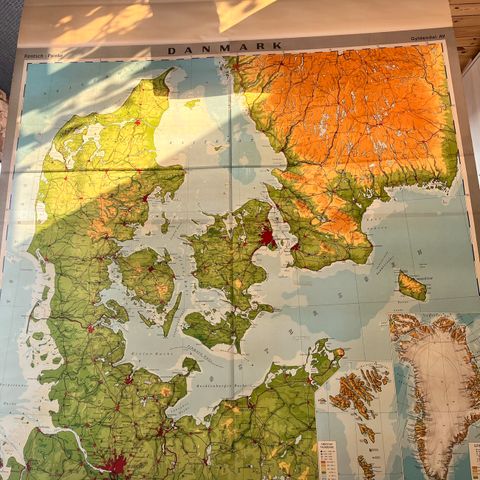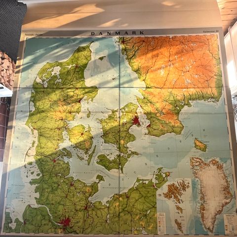 Jeg sælger et skole Danmarkskort ca. B: 190 H:190, i fin stand.
