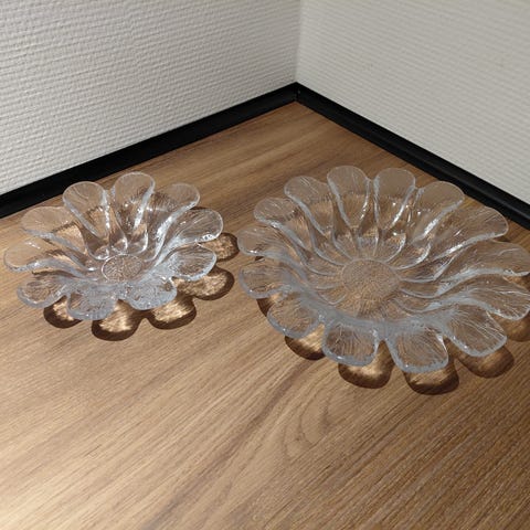 To smukke skåle fra Holmegaard, de ligner blomster I deres udformning.