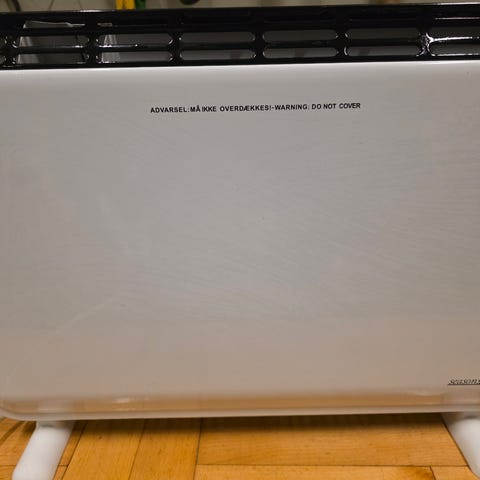 Quigg El-radiator med varmeblæser, og timer. har lidt rust på ophæng,