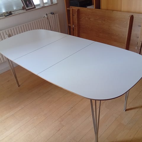 Grundet flytning skal jeg sælge mit lækre hvide elipseformede spisebord. Vi har været rigtig glade for det i de 1,5 år vi har haft det. Stolene følger med hvis ønskes. Hentes I Køge. Nypris 16000 kr uden stolene.
