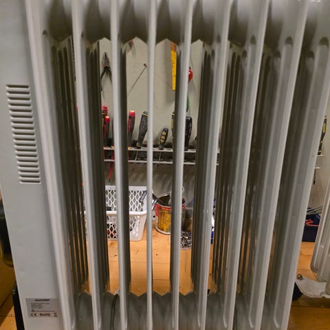 Heatmax olieradiator 9 ribber med timer og blæser, og hjul 2000w 230v 50Hz har rust på hjul