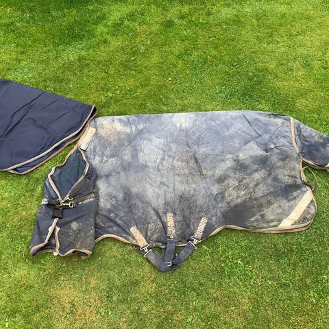 Rambo dækken i navy. Vasket og imprægneret af proff. Klar til brug. Brugt men stadig velfungerende. Almindelig slid. Ingen huller i skal. Tør hest ind fra fold.