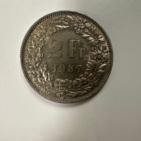 Schweiz 1 Franc mønt fra 1911. Mønten er fremstillet i ægte sølv og har en diameter og vægt som typisk for denne mønttype. Designet inkluderer årstallet 1911 og traditionelle schweiziske symboler.