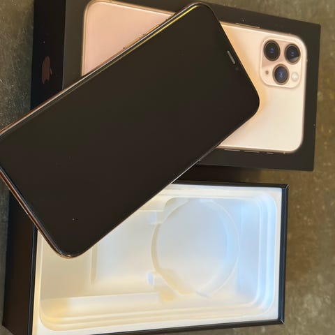 Apple iPhone 11 Pro smartphone med 256 GB lagerplads. Enheden har en mørkegrøn farve og leveres uden original emballage. Batterikapacitet er på 73%.