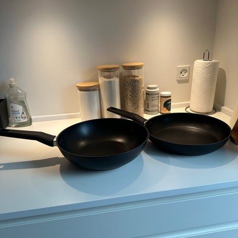 Sæt bestående af 3 stegepander i sort farve med non-stick belægning. Panderne har ergonomiske håndtag for nem håndtering. Velegnet til daglig madlavning.