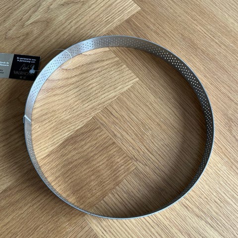Perforeret tærteform fra de Buyer. Måler 20,5 cm i diameteren og 2 cm i højden. Aldrig brugt. Fejler intet.