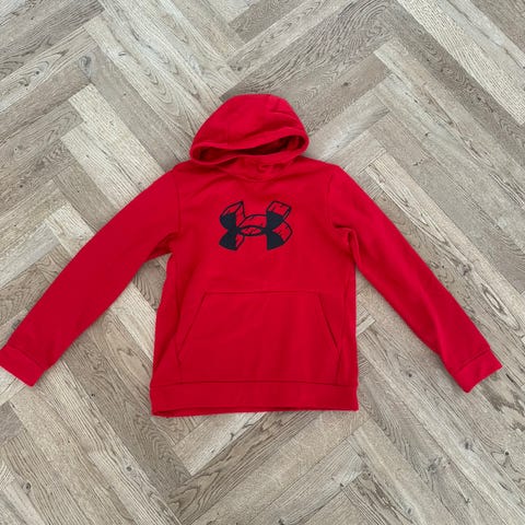 Under Armour hættetrøje i blå farve, størrelse 92, lavet af bomuld. Designet til unisex børn. Hættetrøjen har et stort Under Armour logo på fronten og inkluderer en hætte samt en stor lomme foran.