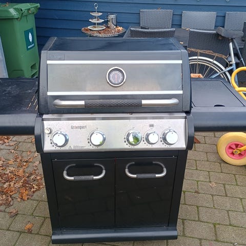 Meget velholdt og fejlfri gasgrill med 4 brændere og keramisk searing sidebrænder, grillareal 110 x 45 cm