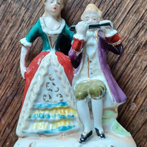 To som klær hinanden. Postbud figur 25 cm samt rød postkasse i porcelæn. Porcelænsfiguren har blå mærker under bunden, der bekræfter ægthed og oprindelse. Er i perfekt stand, hvorimod den røde postkasse mangler bundprop.