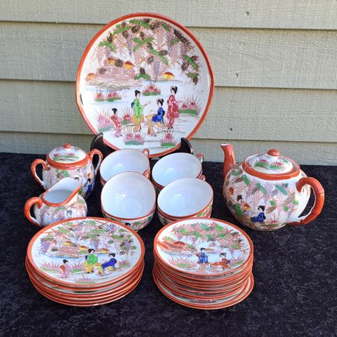 Porcelæn, Japansk testel, Japansk testel af fint, tyndt porcelæn. Med smukt håndmalet mønster.